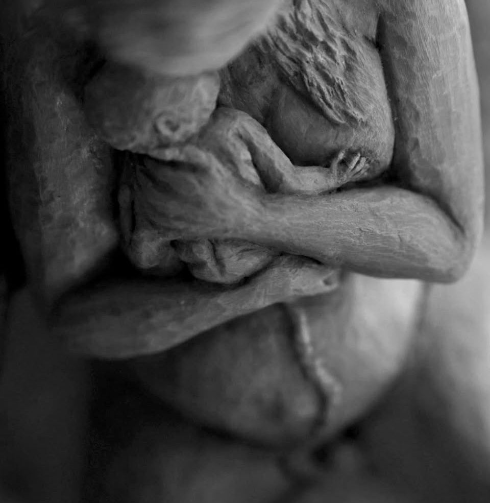 This sculpture shows an empowered woman who has just journeyed her baby earthside, highlighting the euphoric and overwhelming moment of embracing your baby for the first time. Set in the immediate postpartum, this oxytocin filled piece features a fresh newborn nestled skin to skin against the mothers chest with the umbilical cord still intact and draping over the mothers stretched postpartum belly.