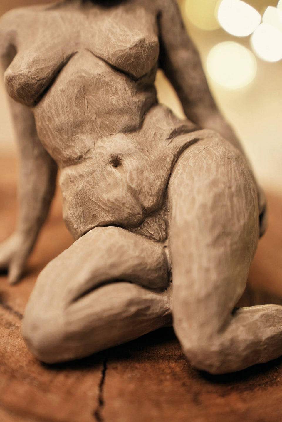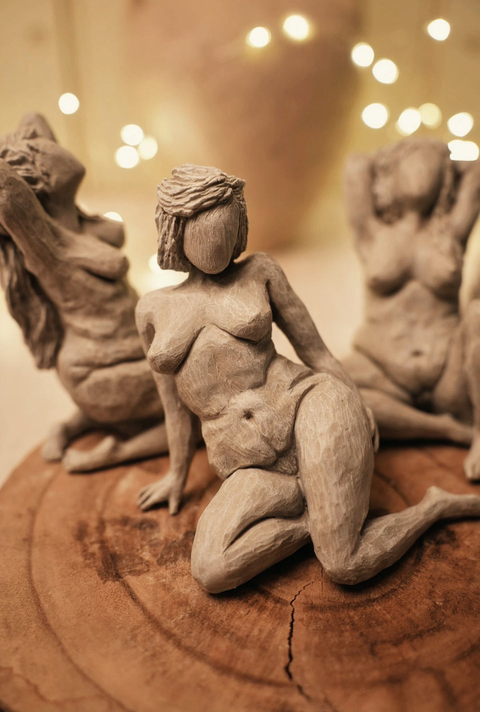 This sculpture is created with detailed body features and a faceless appearance to allow personal connections to form between the sculpture and it's holder. She sits comfortably in the palm of your hand making her the perfect décor size to feature amongst candles, books, desk plants etc.